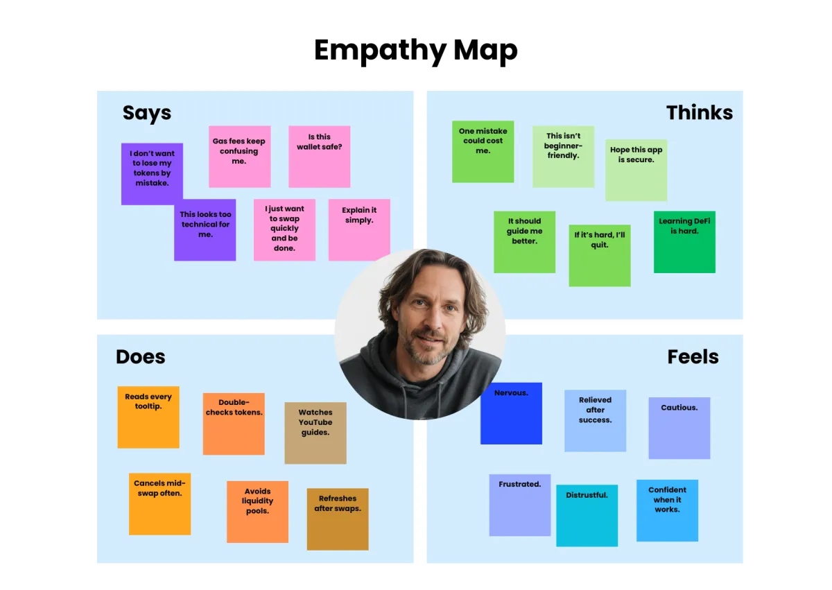 This variety helped highlight onboarding friction, trust gaps, and interface clarity issues.
