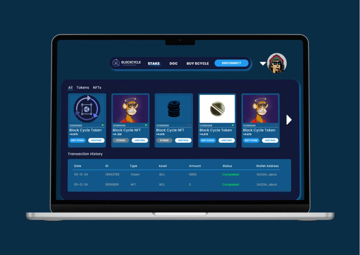 A simplified staking platform designed for $Cycle holders to stake tokens, track rewards, and interact with the Block Cycle ecosystem through a cleaner, more intuitive interface.